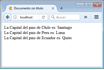 echo "La Capital del Pais de ".$capi." es: ".$valores;