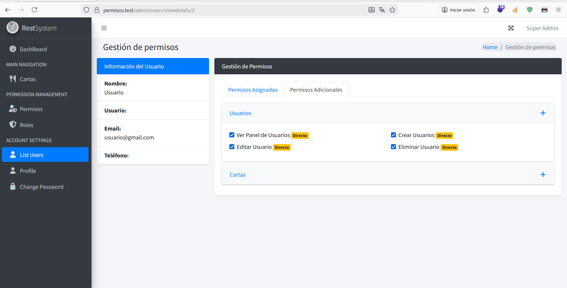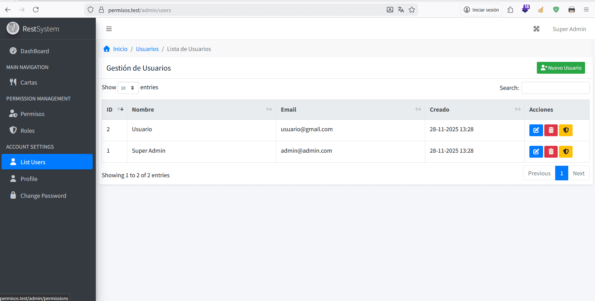 - Roles (SuperAdmin, Administrador, Usuario…)